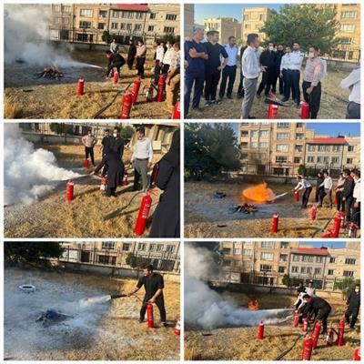 در این مانور که با همکاری تیم بهداشت حرفه ای و ایمنی برگزار شد نحوه ی اطفاء حریق با کپسول های پودری و دی اکسید کربن به صورت عملی آموزش داده شد.